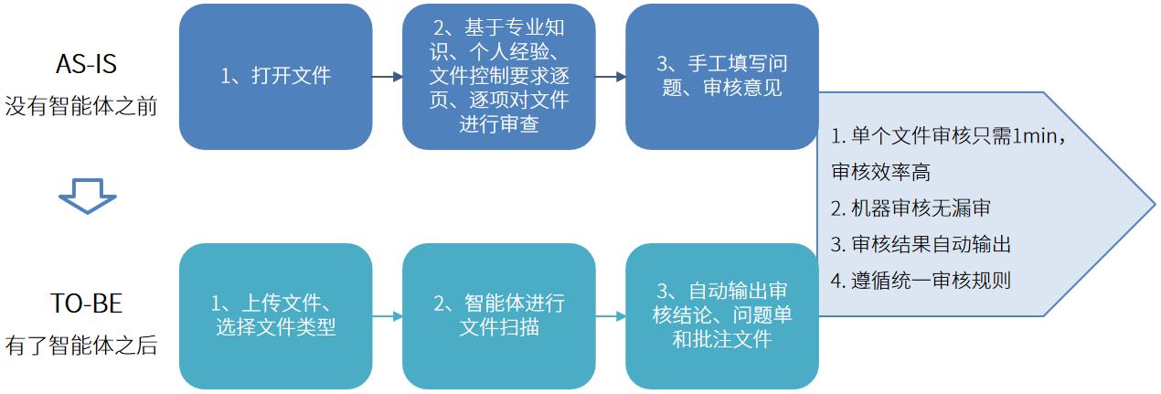 人工審核管理體系文件、報(bào)告等文件耗時(shí)耗力,特別是在法律、金融、政府等文檔密集型行業(yè),文件標(biāo)審中的重復(fù)性工作(如格式檢查、基礎(chǔ)合規(guī)校對(duì))大量占用了專業(yè)人才的寶貴精力。