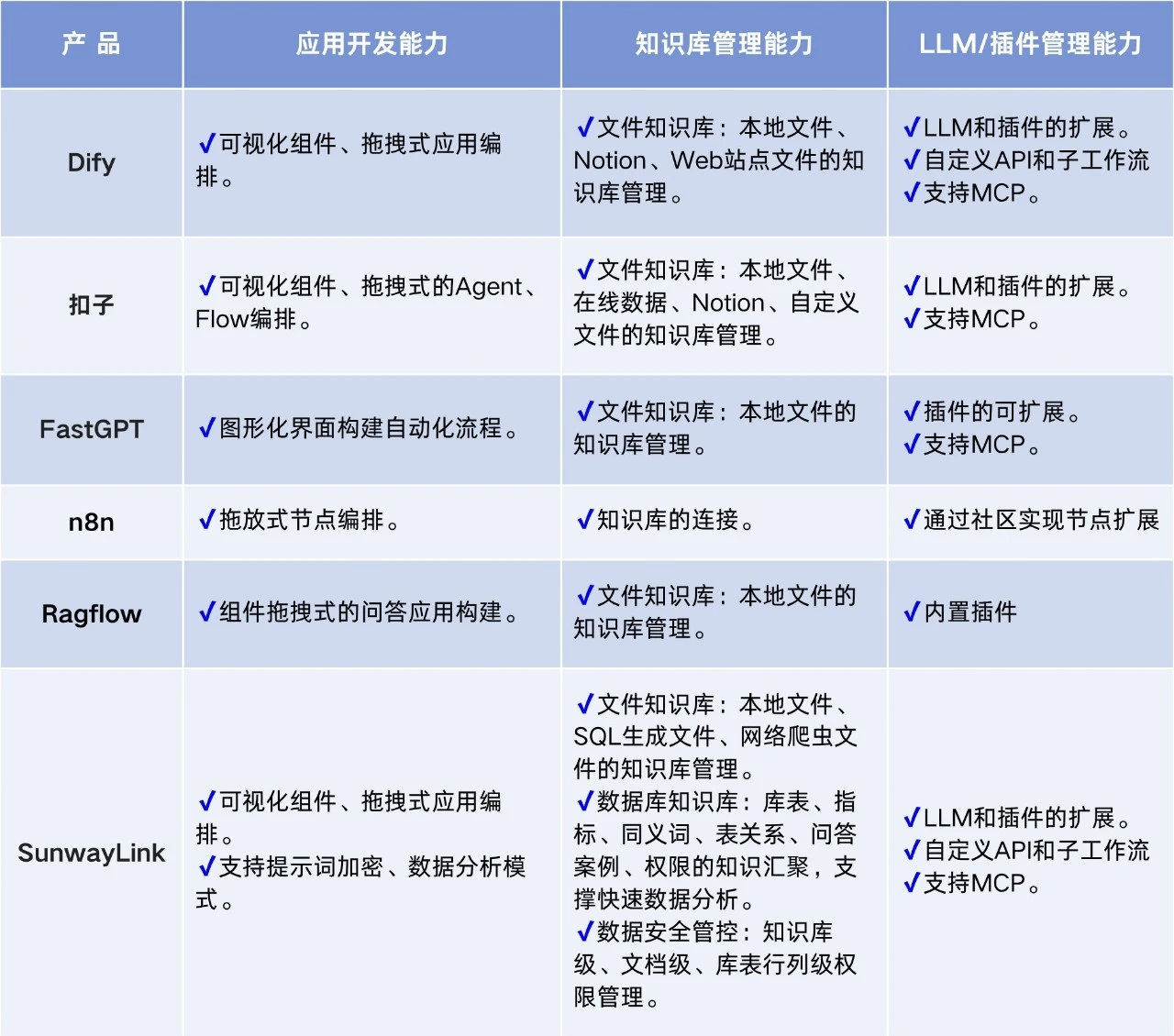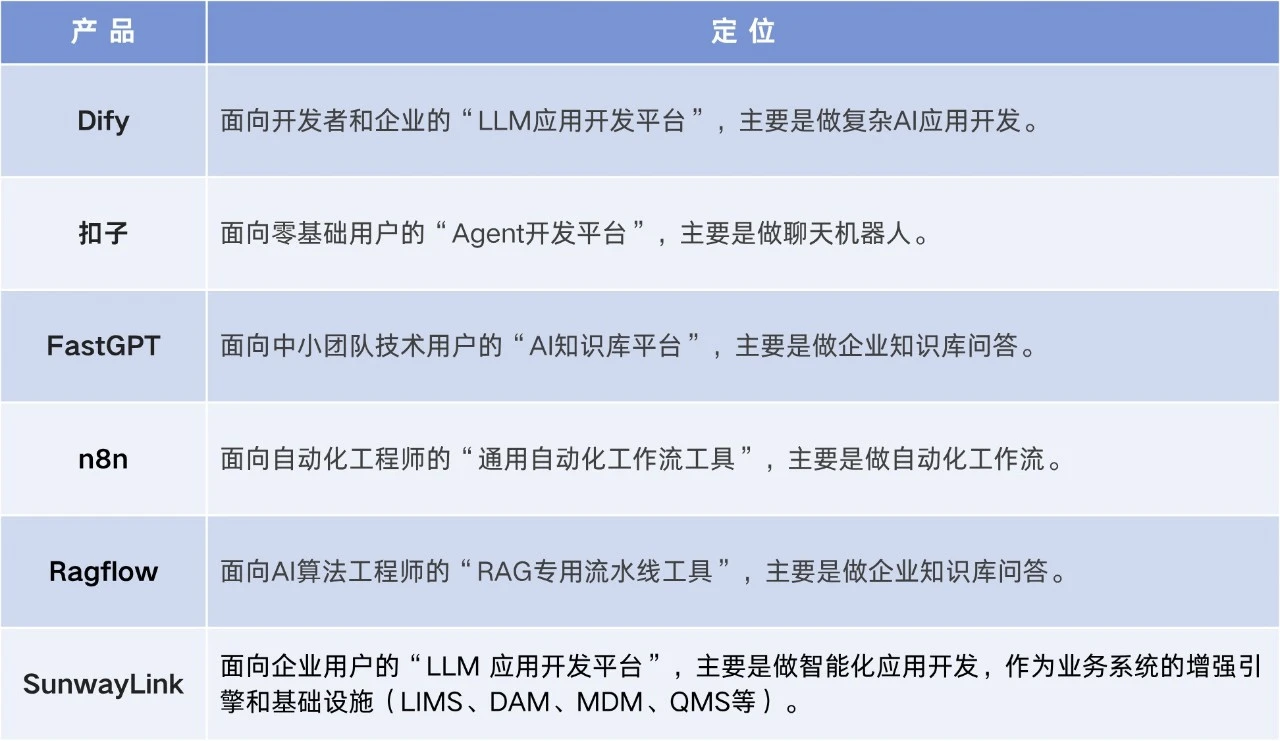 AI應(yīng)用開發(fā)平臺,Dify、扣子、FastGPT、n8n、Ragflow、SunwayLink怎么選?